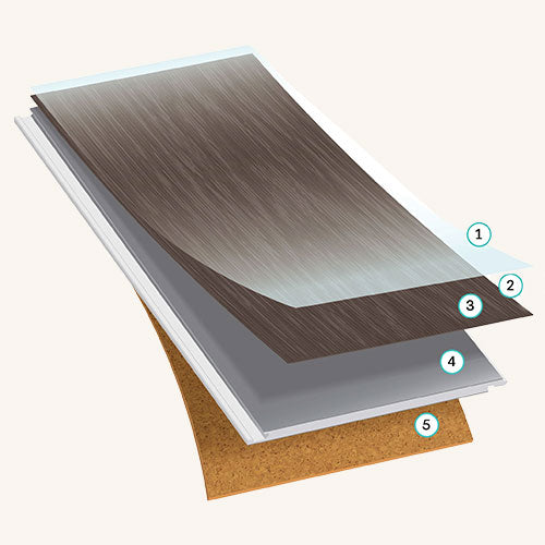 The rigid waterproof core features special top/bottom layers for dimensional stability. This means no expansion under normal conditions, no swelling when exposed to or submerged in water, and no need for expansion strips in large rooms. Its high-density composition provides extra rigidity, giving it exceptional dent and impact resistance.